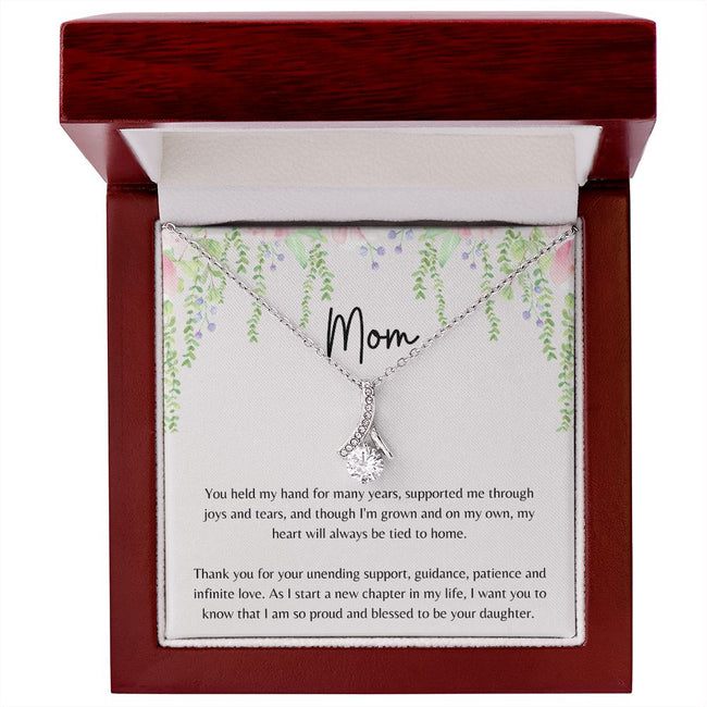 Imagine her reaction when she opens this stunning gift! The Alluring Beauty necklace features a petite ribbon shaped pendant that is sure to dazzle your special someone. Whether it's a birthday or anniversary, make sure to get her a gift she will love for years to come.